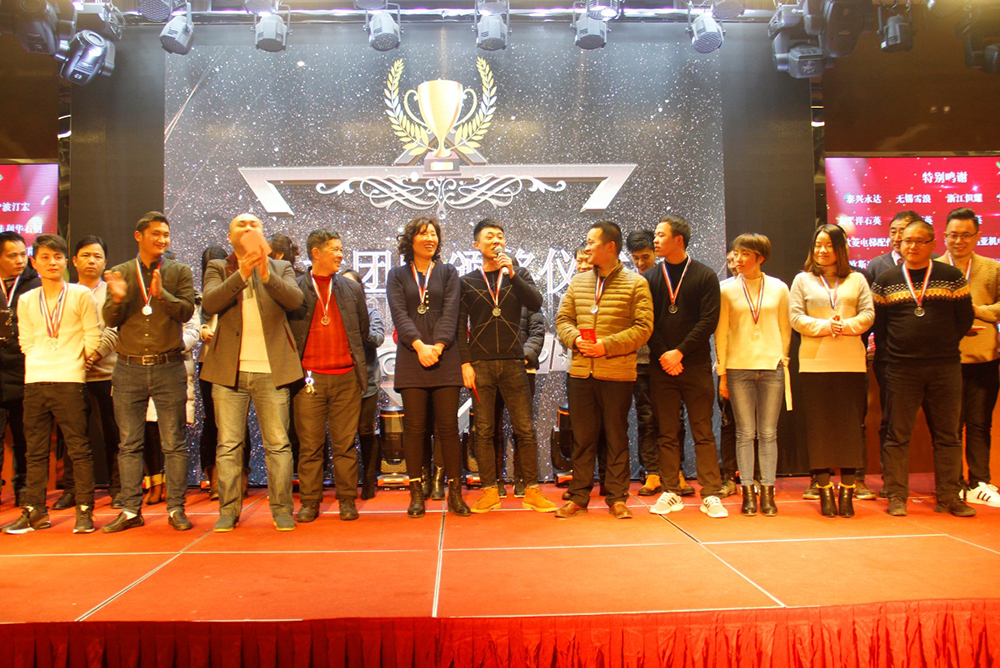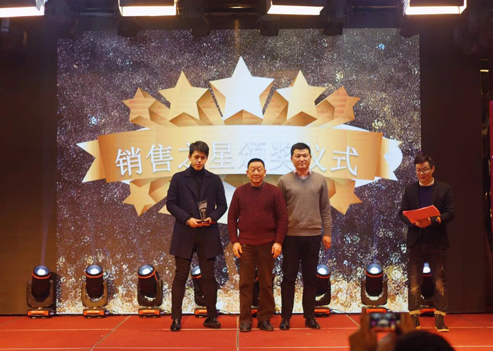 2018年是我们扬帆启航的关键之年,我们将任重而道远,希望全体员工一如既往,继续努力,团结高效,加大设备投入技术升级,积极推进新的绩效管理模式,加快企业上市步伐,实行全员持股,打造公众型企业,进一步增强员工的凝聚力、向心力、战斗力,团结一致,为完成或超额完成2018年的各项目标任务而一起努力奋斗!董事长做简短激昂的发言之后就是优秀员工、先进个人、突出贡献、销售之星、优秀团队的颁奖环节。